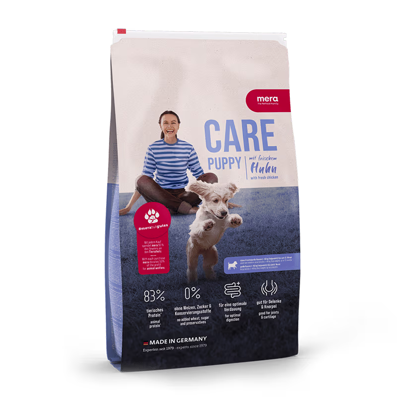 For din lojale følgesvenn tilbyr vi CARE-produktlinjen skreddersydd spesifikt til dens behov. Med et økt kjøttinnhold gir vi hunden din høykvalitets komplett ernæring som tilfører alle essensielle næringsstoffer. Formelen vår gagner ikke bare hundens helse, men også dens utseende. Takket være de rike ingrediensene støtter mera CARE sunn hud og innbydende skinnende pels som inviterer til klapping og kosing.