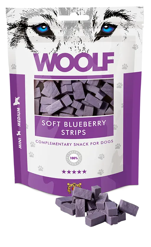Disse myke blåbærstripene er laget av 100 % proteinkilder for å gi den høyeste kvaliteten og det beste næringsinntaket.