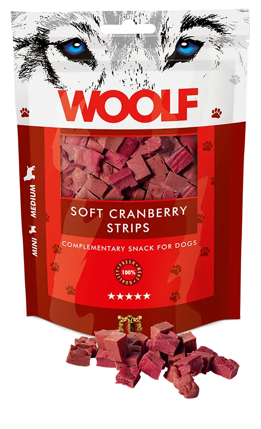 Disse myke tranebærstripene er laget av 100 % proteinkilder for å gi den høyeste kvaliteten og det beste næringsinntaket.